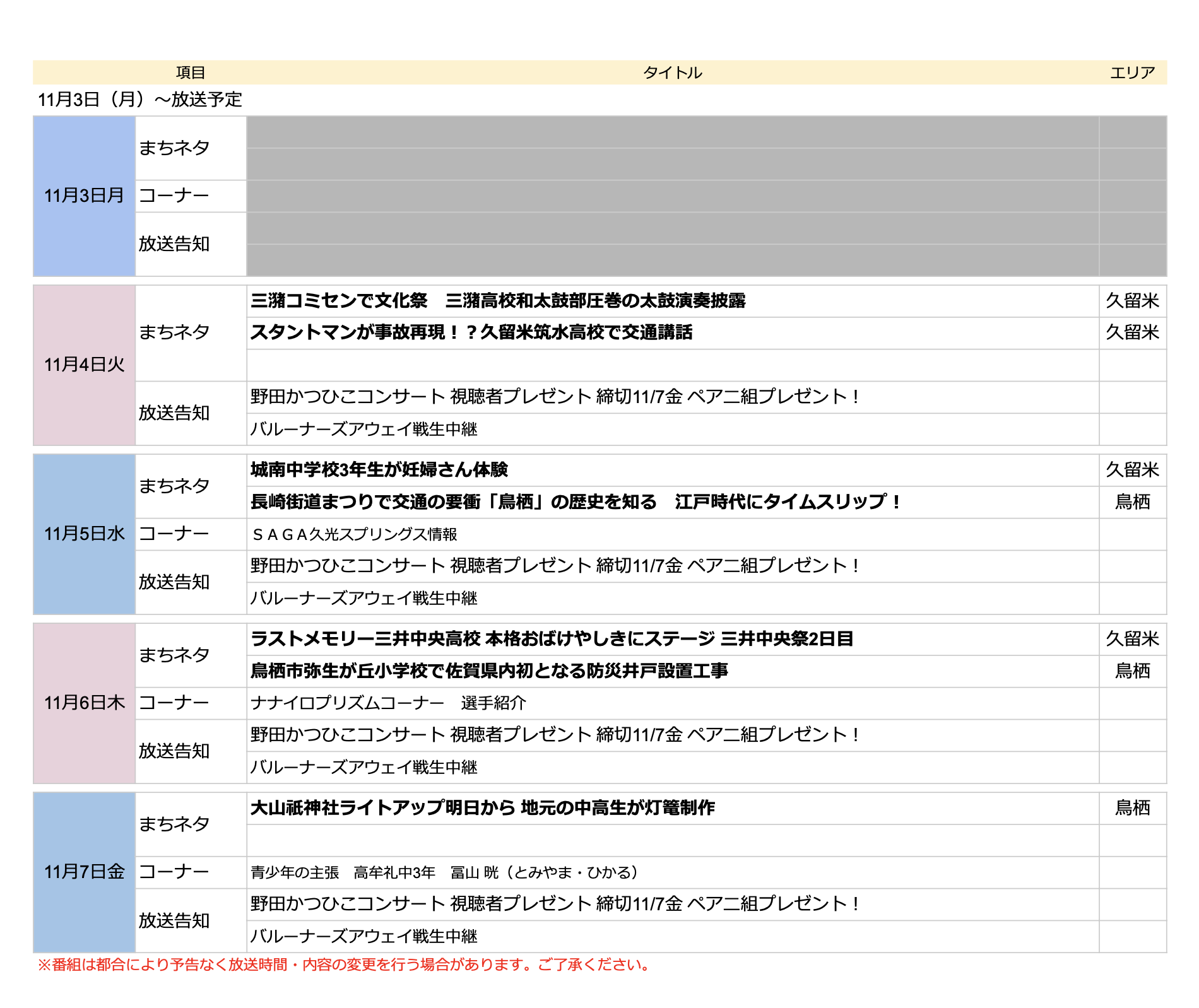 地域情報番組『くーみん・はっぴとすワイド』来週の放送予定