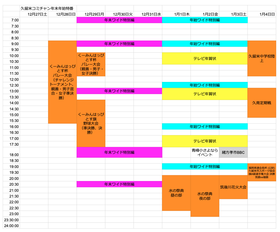 久留米コミチャン年末年始特番番組表