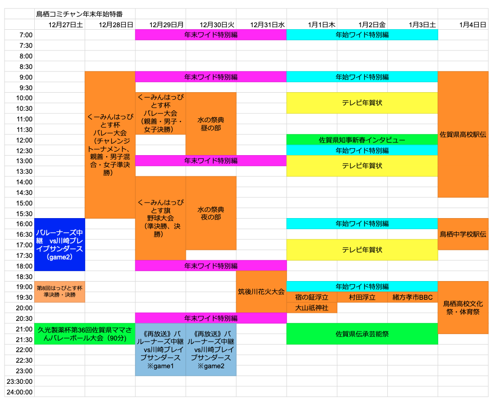 鳥栖コミチャン年末年始特番番組表